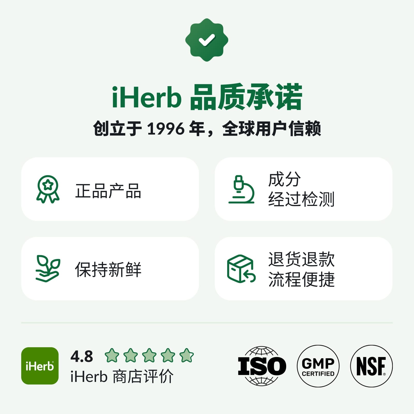 iHerb 一直努力确保其商品图像和信息的准确性,但制造商对包装和/或配料的一些变更,我们网站也需要时间来更新。所以您在购买某款商品的时候, 可能有时候正遇到信息在更新等待队列中。虽然产品可能偶尔会以替代包装发货,但正品品质和新鲜度始终有保证。我们建议您在使用产品前阅读所有的产品标签、警告和说明,而不是仅依赖iHerb网站提供的信息。本网站销售的商品或相关陈述,未经美国食品与药品管理局认证,不具有预防疾病或治疗功能,不能代替药物,不被用于诊断、治疗、治愈、支持或缓解任何疾病。本网站销售的商品从生产到规格均为美国标准,可能与买家所在地标准不同,购买前请务必知悉。 本网站为方便顾客使用,提供机器翻译内容。iHerb 不保证翻译结果完整或正确,对于翻译中可能出现的错误或遗漏,iHerb 不承担任何责任。